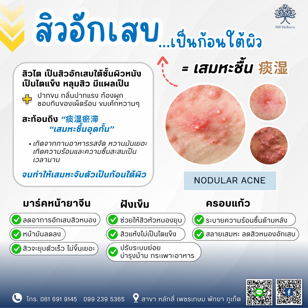สิวอักเสบ เป็นก้อนใต้ผิว = เสมหะชื้น痰湿