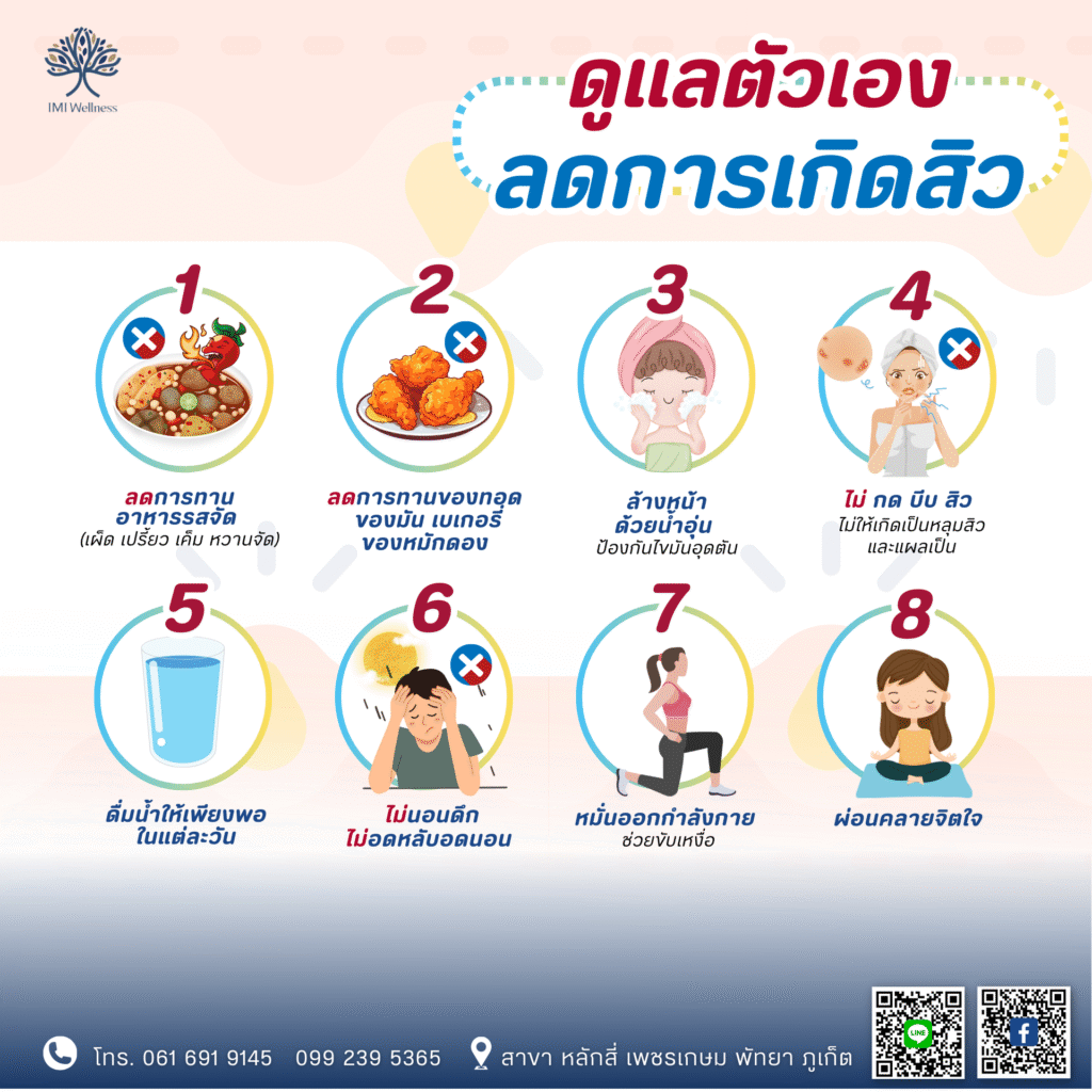 - ไม่กด บีบ สิว ไม่ให้เกิดเป็นหลุมและแผลเป็น