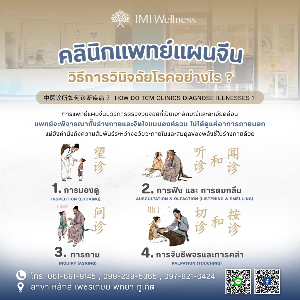 การแพทย์แผนจีนมีวิธีการตรวจวินิจฉัยที่เป็นเอกลักษณ์และละเอียดอ่อน แพทย์จะพิจารณาทั้งร่างกายและจิตใจแบบองค์รวม ไม่ได้ดูแค่อาการภายนอก แต่ยังคำนึงถึงความสัมพันธ์ระหว่างอวัยวะภายในและสมดุลของพลังชี่ในร่างกายด้วย