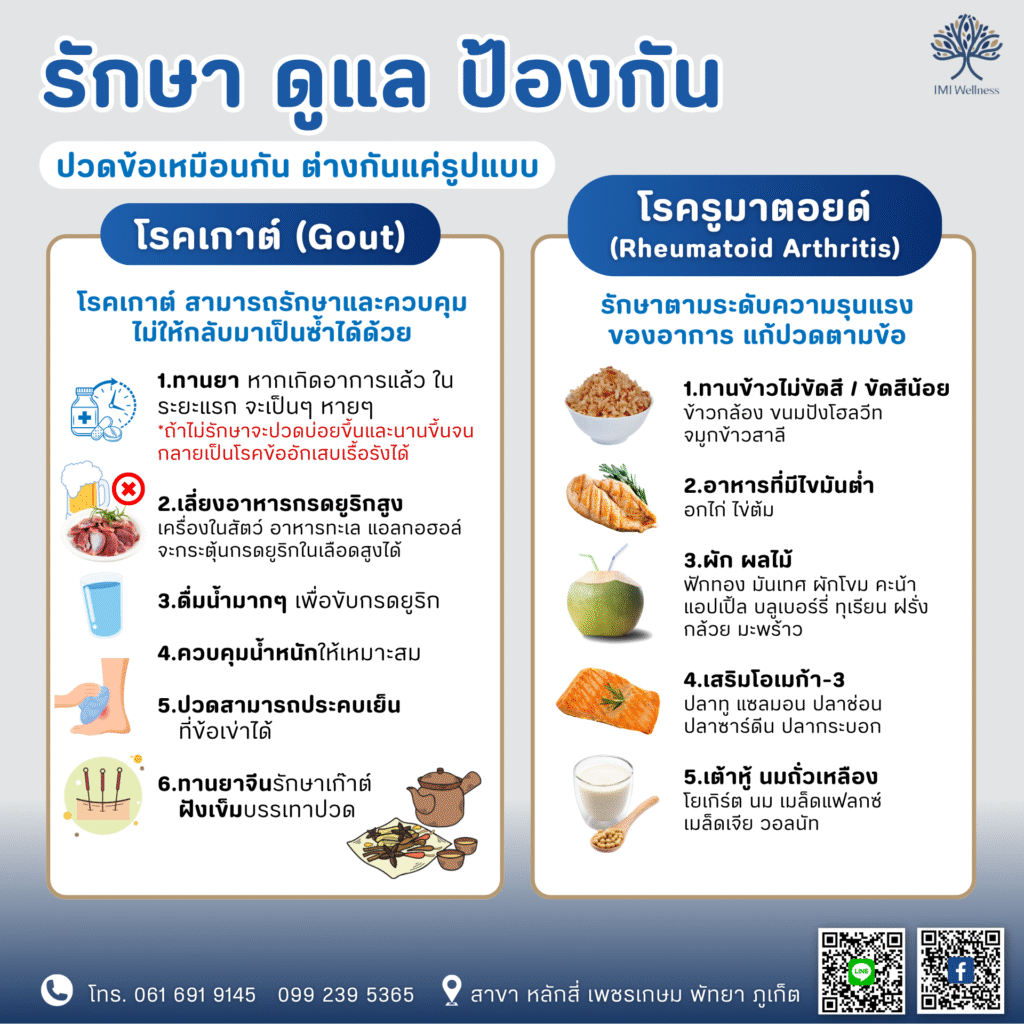 การรักษา ดูแลและป้องกัน โรคเกาต์ VS รูมาตอยด์