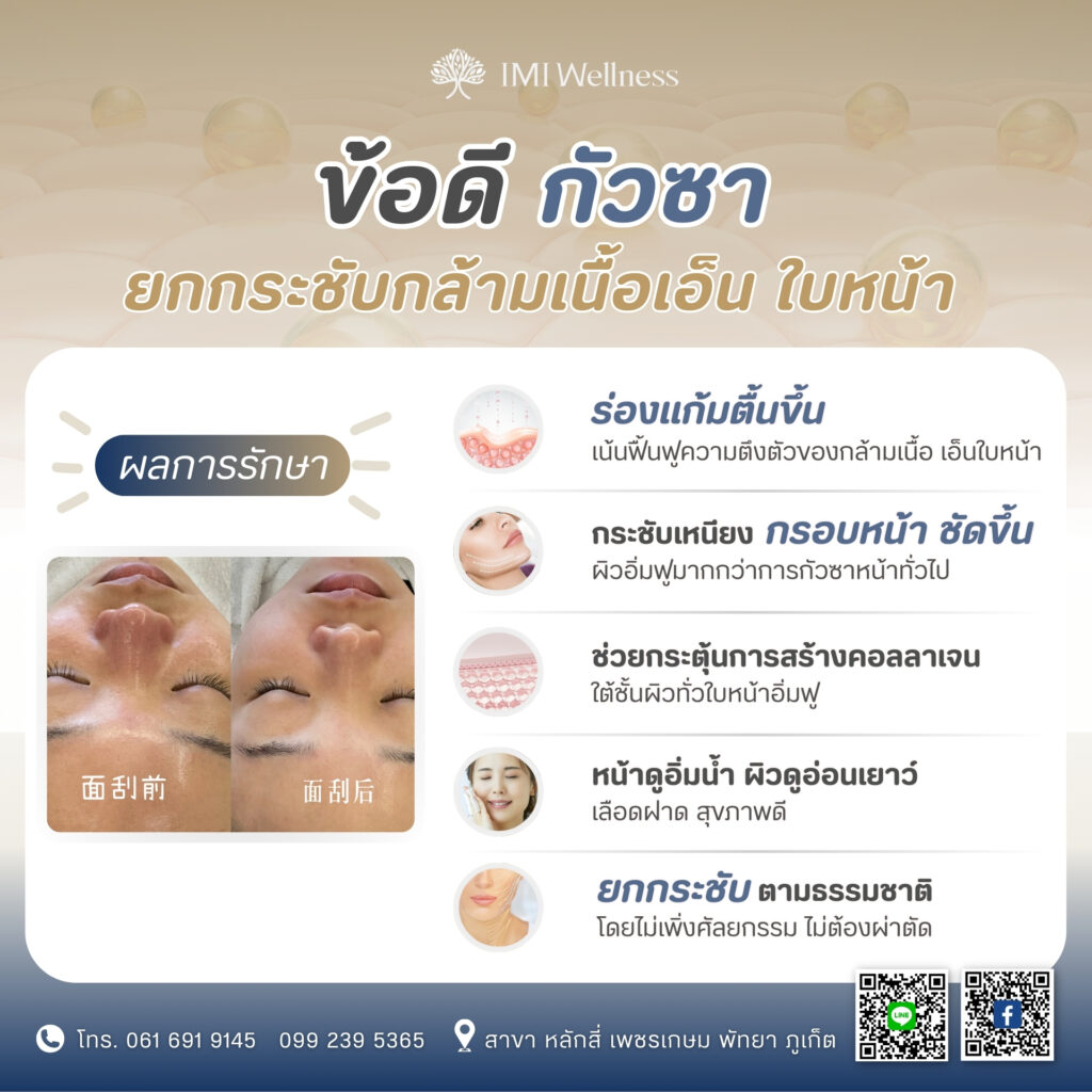 • กระชับเหนียง กรอบหน้าชัดขึ้น ผิวอิ่มฟูกระชับมากกว่าการกัวซาหน้าทั่วไป