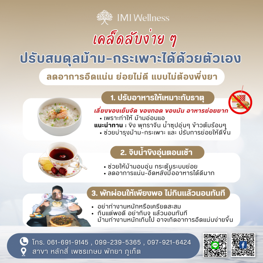 "ท้องอืด แน่นท้อง และเวียนหัว" แม้ดูไม่เกี่ยวข้องกัน แต่ในมุมมองแพทย์จีน นี่คือสัญญาณเตือนของ "ภาวะม้ามและกระเพาะอาหารพร่อง" ที่ทำให้เลือดลมไปเลี้ยงสมองไม่เพียงพอ IMI Wellness ขออาสาดูแลคุณด้วยการปรับสมดุลระบบย่อยผ่านการฝังเข็มและยาสมุนไพรจีน เพื่อขจัดความชื้นสะสมและฟื้นฟูการไหลเวียนของพลังชี่ ช่วยให้คุณกลับมาสบายท้องและสมองปลอดโปร่งอีกครั้ง โดยทีมแพทย์จีนผู้ชำนาญการที่พร้อมดูแลคุณอย่างตรงจุด