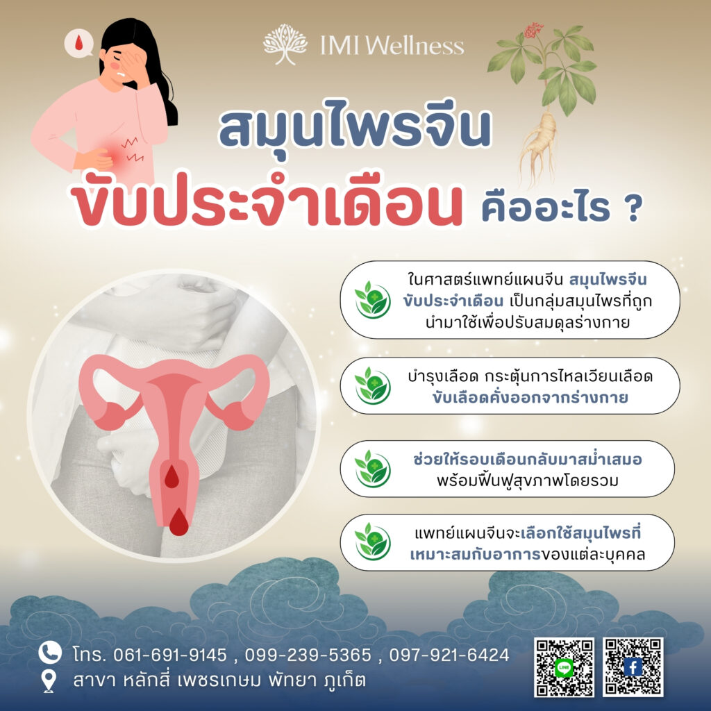 สมุนไพรจีนขับประจำเดือนและแนวทางการกระตุ้นประจำเดือนด้วยแพทย์แผนจีน เป็นอีกหนึ่งทางเลือกสำหรับผู้หญิงที่ต้องการฟื้นฟูสมดุลและแก้ไขปัญหาประจำเดือนผิดปกติ ด้วยการวินิจฉัยที่ตรงจุดและการดูแลเฉพาะบุคคลโดยทีมแพทย์แผนจีนที่มีประสบการณ์ ผู้ที่มีปัญหาสุขภาพในเรื่องนี้สามารถปรึกษา IMI Wellness เพื่อรับคำแนะนำและแนวทางการรักษาที่เหมาะสมกับตัวเองได้