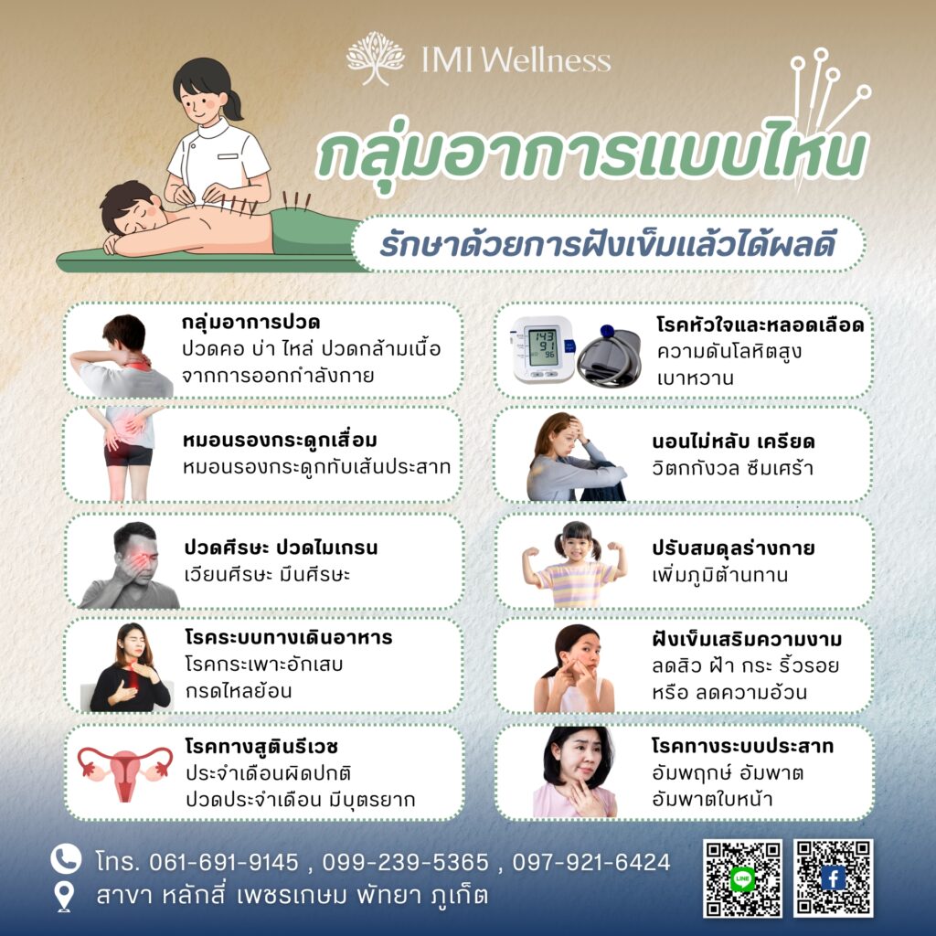การฝังเข็มรักษาเป็นศาสตร์ที่ต้องอาศัยความชำนาญและประสบการณ์สูง ที่ IMI Wellness เราให้บริการโดยแพทย์แผนจีนที่มีใบประกอบโรคศิลปะและประสบการณ์จริง พร้อมการวินิจฉัยที่ลงลึกถึงต้นเหตุของปัญหา ไม่ใช่เพียงแค่รักษาอาการที่ปลายเหตุ เรามุ่งมั่นสร้างผลลัพธ์ที่มากกว่าการบรรเทาอาการชั่วคราว แต่คือการฟื้นฟูสุขภาพอย่างยั่งยืน ให้คุณกลับมามีคุณภาพชีวิตที่ดีในระยะยาว