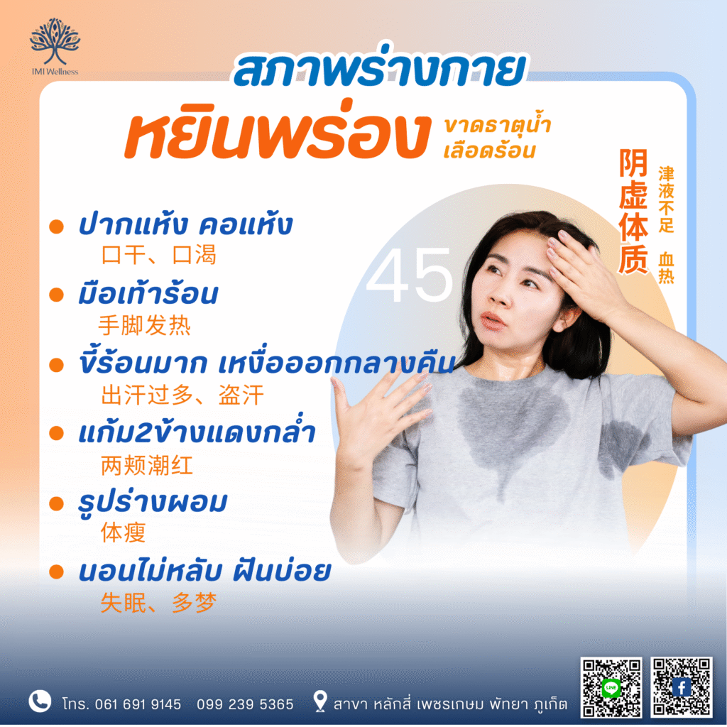 7.สภาพร่างกาย หยินพร่อง (ขาดธาตุน้ำ เลือดร้อน) 阴虚体质(津液不足,血热)